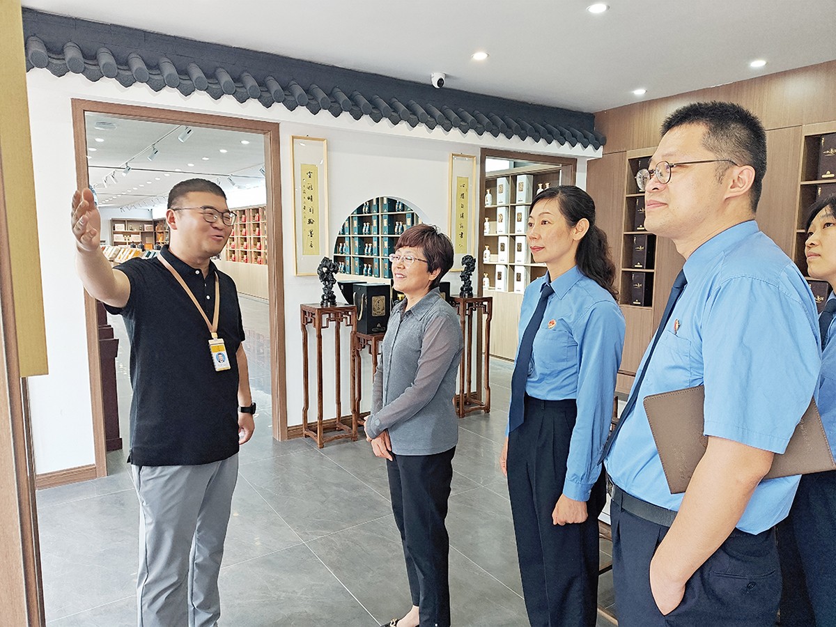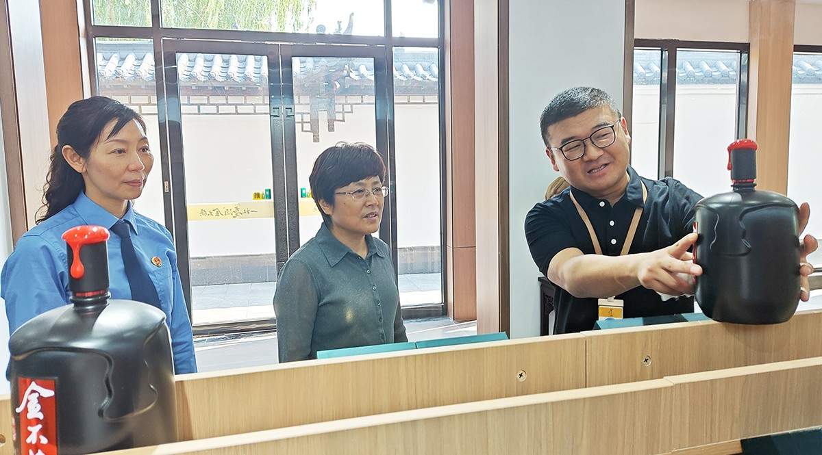 劉繼英一行在金不換集團(tuán)黨委書記、總裁支濤的陪同下,實(shí)地查看了金不換白酒儲藏、銷售、生產(chǎn)、文化展示基地。聽取企業(yè)生產(chǎn)經(jīng)營情況和發(fā)展規(guī)劃介紹。劉繼英檢察長對金不換多年來堅(jiān)持守法誠信經(jīng)營,創(chuàng)造良好生產(chǎn)經(jīng)營環(huán)境,取得高質(zhì)量發(fā)展給予高度贊揚(yáng)。
