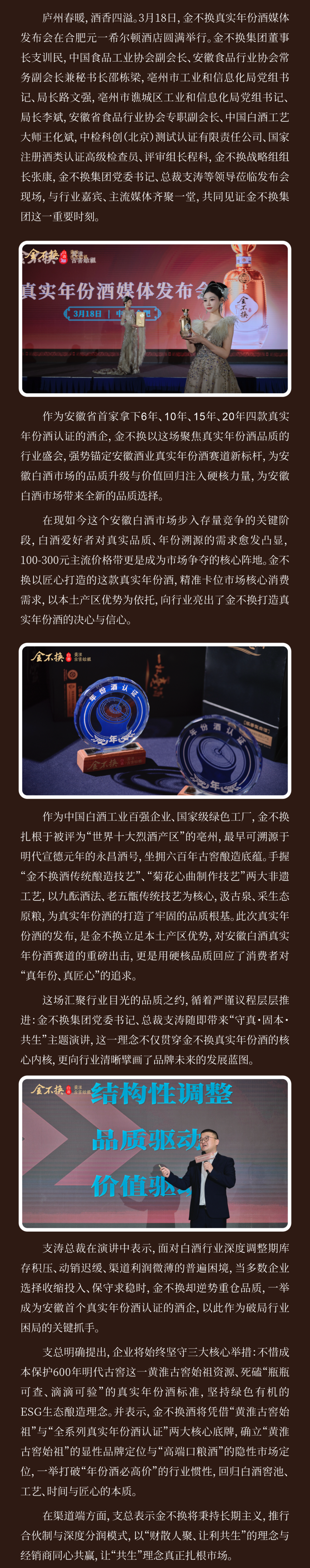 黃淮古窖始祖金不換,獲評安徽首家真實年份酒認(rèn)證企業(yè)